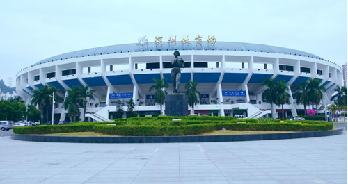 深圳體育館[是深圳市政府于一九八五年投資興建的。他的建筑呈正方形,造形宏偉、堅(jiān)實(shí)。銀白色的建筑總體,在濃綠的筆架山映襯下,顯得分外鮮明、突出。特別是那四根拔地而起的立柱,支撐著巨大的棚頂,頗具頂天立地之氣度。