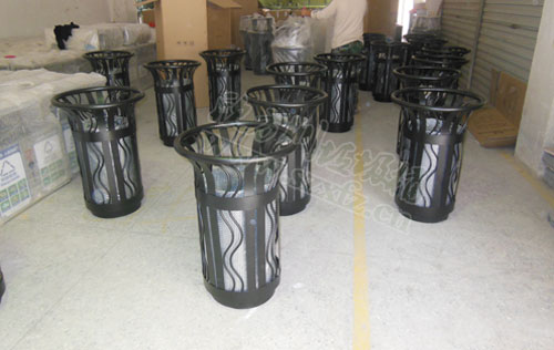 客戶訂購的這款F01花籃垃圾桶,名稱也叫鋼制垃圾桶?;ɑ@式戶外垃圾桶頂圈圓管用35mm,厚1.5mm,扁鋼用厚度3.0mm,寬30mmm,花籃式戶外垃圾桶桶身上下圈厚度3.0mm*高65mm.花籃式戶外垃圾桶內(nèi)桶分別用塑料桶或者玻璃鋼兩種材質(zhì)。外觀呈花籃,整個形狀有點像打籃球的投籃口。學(xué)校的女同學(xué),投遞垃圾時可以練習(xí)投籃,不在怕投不上高高的籃球架上去。環(huán)保與娛樂相結(jié)合,為校園添加不少樂趣。