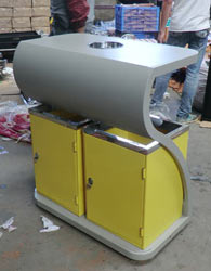 由于欣方圳垃圾桶廠家該款鋼制垃圾桶訂單的產(chǎn)品是鍍鋅鋼板材質(zhì),大大增加了產(chǎn)品的使用壽命,根據(jù)客戶的要求,該產(chǎn)品采用靜電噴涂工藝,使桶身表面的漆料牢牢吸附, 漆料方面更是選用了防水,防腐,耐高溫的材料,更是增加了該產(chǎn)品的耐用性。桶身投口采用內(nèi)推蓋的設(shè)計(jì),不僅僅美觀,更是防止蚊蠅的滋生。方便了垃圾的存放,由于該桶為兩個(gè)單桶組合在一起,桶身上由專業(yè)的設(shè)計(jì)人員設(shè)計(jì)公司的圖案,不僅僅突出了公司的標(biāo)識,更使得產(chǎn)品更加美觀。
