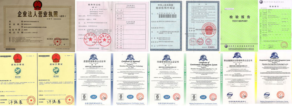 欣方圳營業(yè)執(zhí)照、稅務(wù)登記證、組織機(jī)構(gòu)代碼證,垃圾桶檢驗(yàn)報(bào)告資質(zhì),“欣方圳”注冊商標(biāo),信息安全管理、知識產(chǎn)權(quán)管理、ISO9001:2015、ISO14001:2015、OHSAS18001認(rèn)證企業(yè)