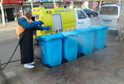 洗桶車自帶清水4.5噸,可一次清洗250個垃圾桶,洗下來的污水還能存在車內(nèi),絕對不造成污染。