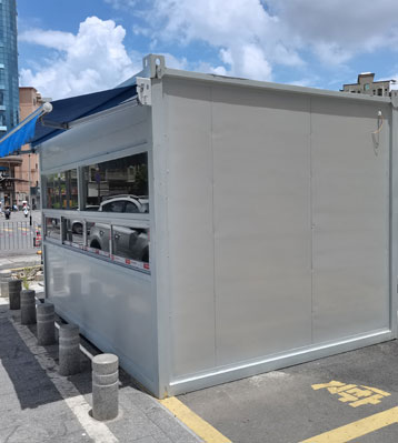 欣方圳為深圳龍華社區(qū)生產(chǎn)的簡易核酸亭,集裝箱式可吊裝移動(dòng)方艙快速拼裝核酸采樣板房,使用方便,制作快捷,配備風(fēng)扇,空調(diào),雨棚和擋雨板,照明,隔熱,防潮,等功能。提升醫(yī)護(hù)人員核酸采樣環(huán)境舒適性,防疫