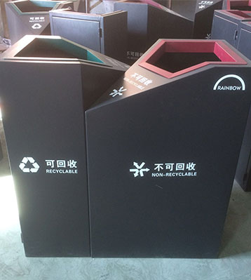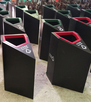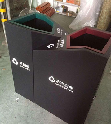 欣方圳鋼板噴塑分類垃圾桶表面經(jīng)過除油、噴砂防銹處理后,再進(jìn)行酸洗磷化處理;表面清理干燥后整體進(jìn)行靜電噴涂或烤漆處理.。