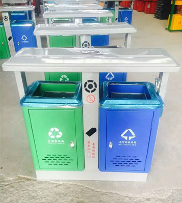 欣方圳戶外鋼制環(huán)保分類垃圾桶工廠批量生產(chǎn)圖