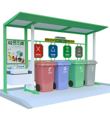 設(shè)有擋雨棚,可配備垃圾箱信息顯示屏、防水照明燈、廣告屏,進行地面硬化。對社區(qū)玻金塑紙可回收物,其他垃圾,廚余垃圾,有害垃圾等生活垃圾定時定點投放收集.