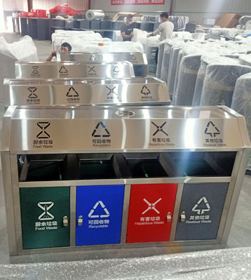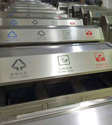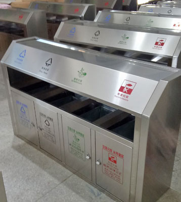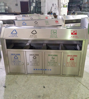 欣方圳斜切面不銹鋼四分類(lèi)垃圾桶絲印新標(biāo)準(zhǔn)分類(lèi)圖標(biāo)