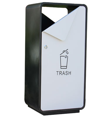 桶頭R角弧度防撞設(shè)計(jì),投口折紙創(chuàng)意設(shè)計(jì),使這款戶外果皮箱在城市擺放新穎時(shí)尚,黑白色調(diào)方形外觀可雙向果皮垃圾投放,不銹鋼烤漆戶外防銹升級(jí)耐用!