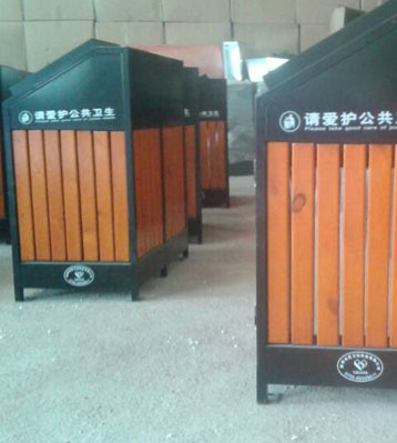 欣方圳戶外廣場(chǎng)鋼木分類垃圾桶原材料采用真空泵排除空氣、填充防腐液、加壓滲透、抽真空排出多余防腐液達(dá)到先進(jìn)的防腐防蟲工藝。