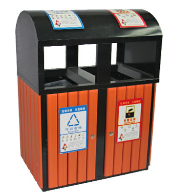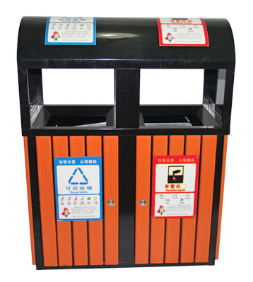 • 產(chǎn)品名稱:校園戶外鋼木分類垃圾桶