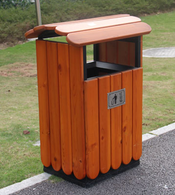 欣方圳木屋鋼木單桶垃圾桶廠家批量生產(chǎn)圖