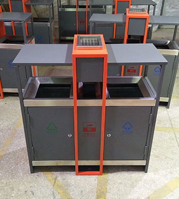 欣方圳戶外鋼制分類烤漆垃圾桶表面經過除油、噴砂防銹處理后,再進行酸洗磷化處理;表面清理干燥后整體進行靜電噴涂或烤漆處理.。