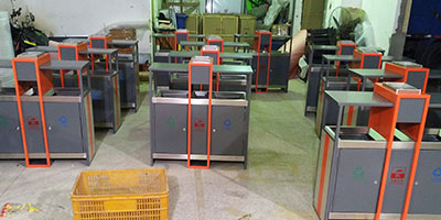• 產品材質:欣方圳戶外鋼制分類烤漆垃圾桶采用優(yōu)質冷軋鋼材料經剪鈑下料、折彎、沖壓、焊接、打磨、等工藝:表面經過除油、噴砂防銹處理后,再進行酸洗磷化處理;表面清理干燥后整體進行靜電噴涂或烤漆處理,靜電噴涂是經過流水線高溫固化爐固化后再出爐冷卻,加工后的塑粉附著力強,不易剝落;
